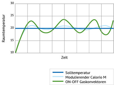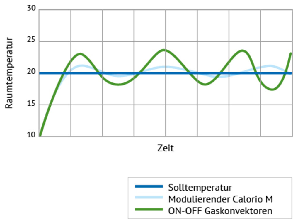 Der Calorio M bietet eine innovative modulierende Heiztechnik für kleine bis mittelgroße Räume. Er sorgt für eine schnelle und individuelle Beheizung von Versand-/Meister-