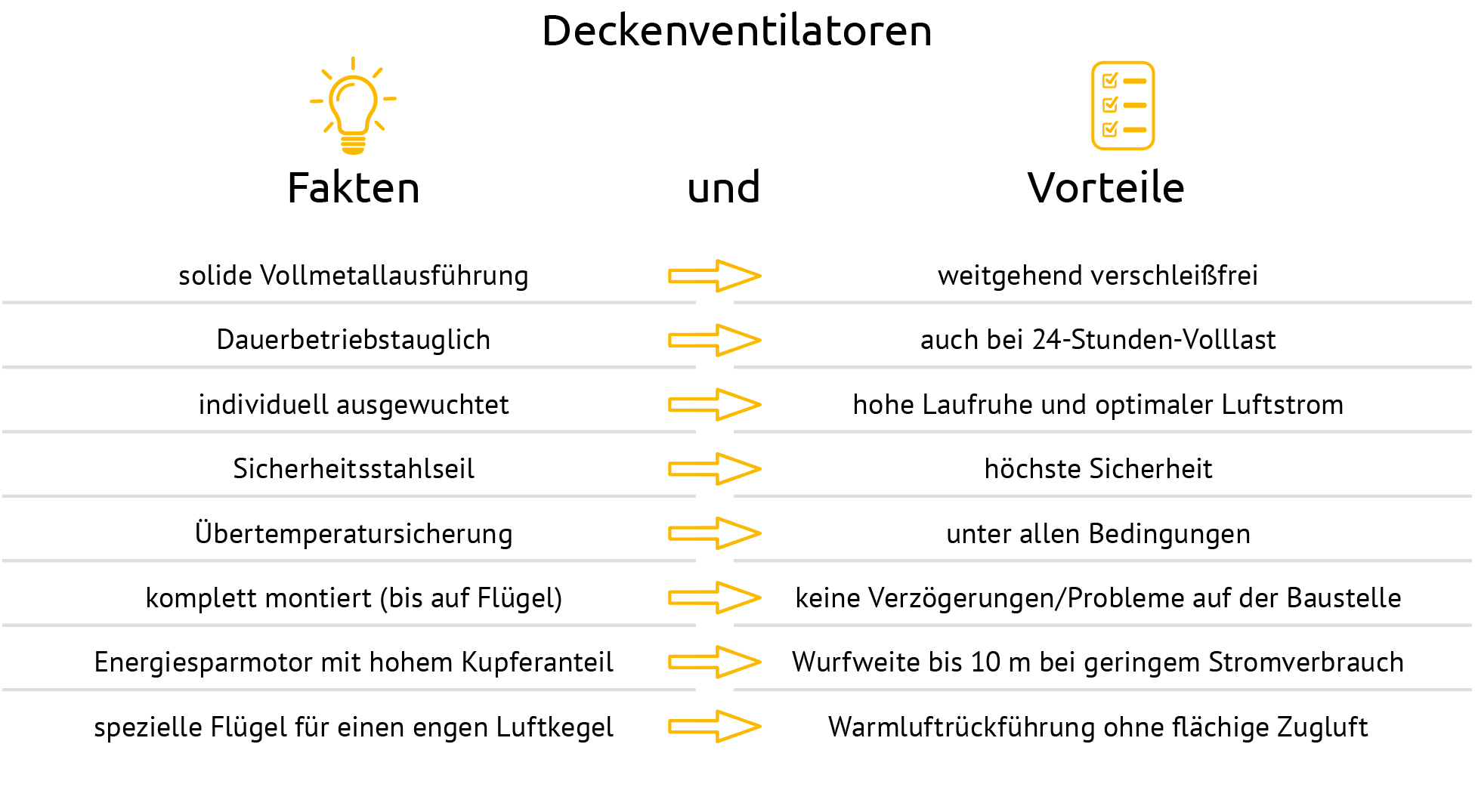 - gleichmäßige Luftverteilung und Temperaturausgleich in allen Bereichen des Raumes