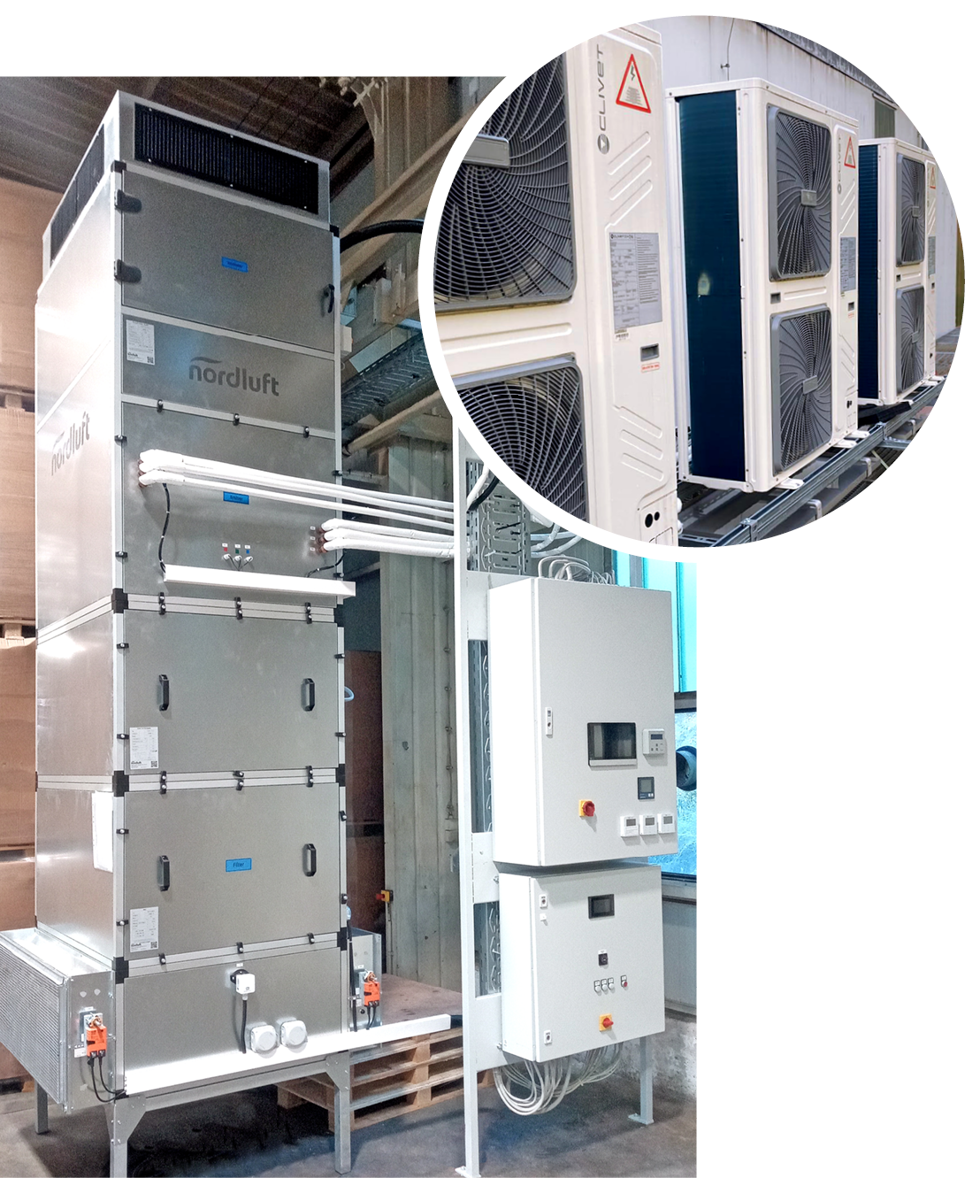 Die Warmluftsysteme von nordluft basieren auf einem effizienten Modulsystem und ermöglichen eine kostengünstige, praxisgerechte Anlagentechnik für Heizung und Lüftung. Sie sind direktausblasend oder als Kanalgerät erhältlich und lassen sich mit einer Vielzahl technischer Komponenten erweitern. Filterung, Schalldämmung und weitere Funktionen können durch flexibles Zubehör integriert werden.