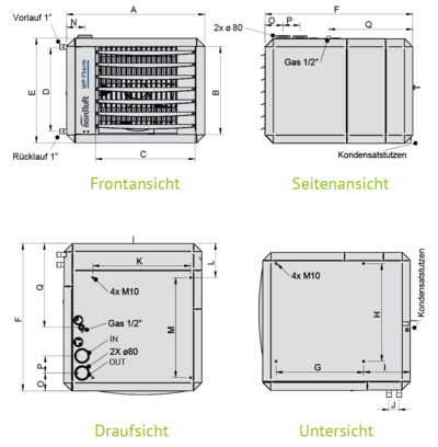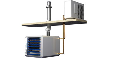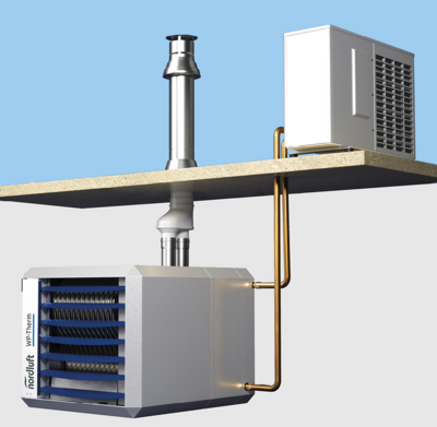 - Spitzenlastwärmeerzeuger als Gas-Brennwert-Warmlufterzeuger