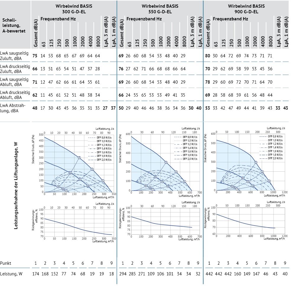| Effizienz der Wärmerückgewinnung | % | 72–90 | 78–90 | 75–88 |