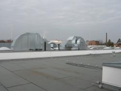 - Einsatz von drei Warmlufterzeugern, die in Kaskade gesteuert werden, zur Realisierung der Heizleistung