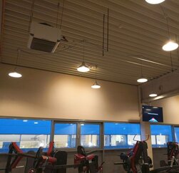 Zur Erfüllung der Anforderungen wurde ein System aus zwei AREO-Luftheizern installiert, das bedarfsgerecht die Beheizung der Trainingsflächen und Umkleiden übernimmt. Die Luftheizer wurden deckenhängend installiert, wodurch eine optimale Luftverteilung erzielt wird und zudem effektiv Platz für weitere Sportgeräte eingespart wird.