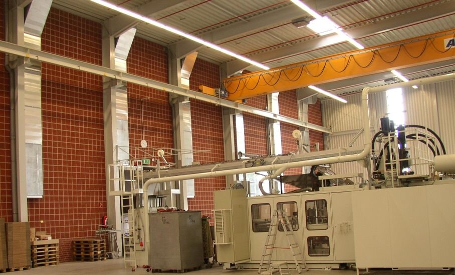 Einsatz einer auf den Hafttrockner aufgesetzten einer offenen Prozessbrennkammer und drei Ventilatoren. Durch die offene Gestaltung der Brennkammer verbleiben die Abgase prozessbedingt in der Zuluft wodurch bei einer Heizleistung von 150 kW ein Wirkungsgrad von 100 % erzielt wird. Die drei Ventilatoren erzeugen jeweils einen Luftvolumenstrom von 20.000 m³/h, durch den ein Druckverlust von 600 Pa überwunden wird. (Brennkammer nicht berücksichtigt) Durch die stabile Rahmenkonstruktion ist das Heizelement einfach in das bestehende System zu integrieren.