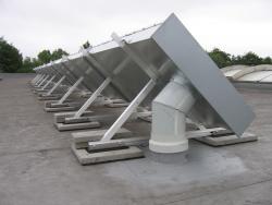 nordluft empfahl eine EcoSolar-Anlage als solarunterstütztes Warmluft- und Lüftungssystem. Das normalerweise mit einer Warmluftanlage gekoppelte System wurde in diesem Fall als autarke Anlage auf dem Dach der Produktionshalle installiert. EcoSolar basiert im Hinblick auf das EEWärmeG auf der Solarthermie / Solarluft. Das Solarmodul mit einer Kollektorfläche von 20 m² ist auf einer geneigten Haltekonstruktion befestigt und erwärmt die durchströmende, über das Filtermodul angesaugte und gefilterte Luft durch die Sonneneinstrahlung. Am Ende des Luftkollektors fördert der zugehörige Ventilator die erwärmte Luft in die Produktionshalle.